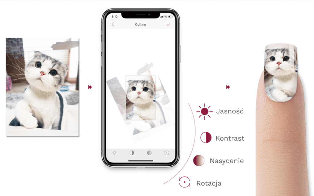 Funkcja DIY zamienia drukarkę do paznokci w Twoje osobiste studio projektowe. Wystarczy wgrać dowolne zdjęcie lub grafikę z telefonu, a intuicyjny edytor pozwoli Ci dopasować rozmiar, jasność i ułożenie wzoru bezpośrednio na płytce. To idealne rozwiązanie, by stworzyć unikalny manicure i podkreślić swój indywidualny styl niepowtarzalnym projektem na każdą okazję.